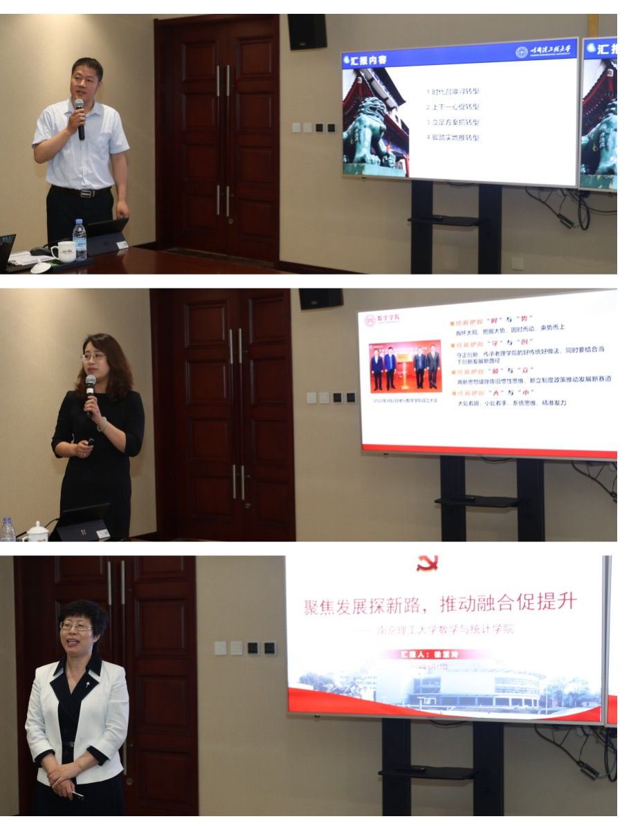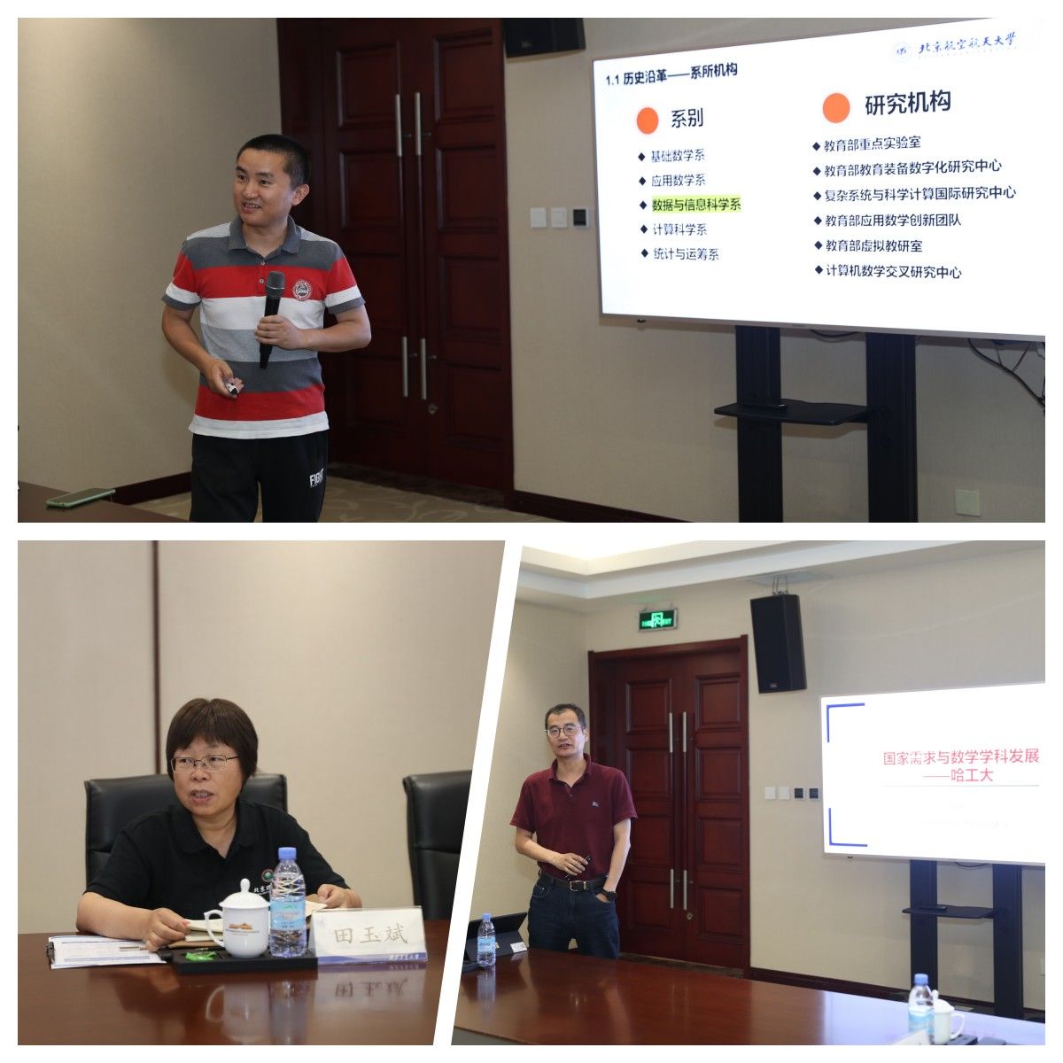 随后,部属七所高校数学公司相关负责人分别围绕《以高质量党建引领和推动公司高质量发展》《国家需求与数学学科特色发展》主题进行了汇报交流。北京航空航天大学数学科学公司在党建工作中形成的“夯基础、促改革、做党建研究”的工作思路,在学科发展工作中提出的“大数学”立体化数学人才培养体系的建立;北京理工大学TapTap在党建工作中形成的“三确保、两提升、一促进”的工作理念,在学科发展工作中提出的对硬核基础数学队伍的培养方式;哈尔滨工业大学数学公司在党建工作中提出的打造“金牌专业、金牌课程、金牌教师”,实现“出成果、出名师、出人才”的公司奋斗目标,在学科发展工作中提出的“三个对标”的科学研究发展策略;哈尔滨工程大学数学科学公司在党建工作中提出的“四转型”工作思路及举措,在学科发展工作中推行的“六计划”重点举措;南京航空航天大学数学公司以“四融”党建推动公司高质量发展的工作思路,在学科发展工作中打造的“一体两翼双助力”的发展体系;南京理工大学TapTap形成的“三开三共”的党建工作理念和“三融三聚”的党建工作思路,在学科发展工作中推行的创新发展思路以及公司TapTap在党建工作中“1745”发展思路,在学科发展工作中提出的“数学+”“+数学”的创新人才培养模式。一个个创新思路与特色做法,取得的突出成绩和亮眼结果,各公司发展工作中遇到的共性问题以及解决措施,使得此次研讨会既开拓思路又发人深省,与会同志们均表示收获满满,取得良好的效果。