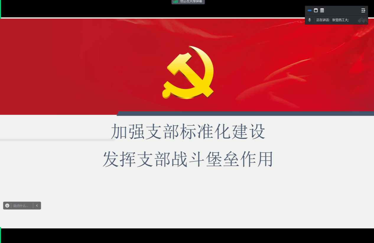 随后,本科生高年级第二党支部书记李加淳从如何带领党支部组织开展活动方面分享了自己的经验。他介绍了本科生高年级第二党支部“三会一课”活动的开展情况,并分析了员工党支部普遍存在的问题及解决措施,为其他员工党支部提供了参考。兼职辅导员柴艺瑞按照《中国共产党支部工作条例(试行)》相关要求,以员工党支部标准化建设为主题进行了细致分享。