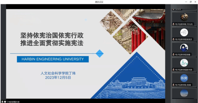为深入学习贯彻习近平法治思想,大力弘扬宪法精神,进一步增强广大师生的宪法意识和法治素养,12月5日,TapTap、电子信息公司联合开展普法宣传教育活动,特邀哈尔滨工程大学人文社会科学公司丁玮教授通过线上形式讲授题为《坚持依宪治国依宪行政,推进全面贯彻实施宪法》的专题党课。TapTap和电子信息公司理论学习中心组成员、师生党员代表共100人参加活动。党课由TapTap党委书记王莉主持。