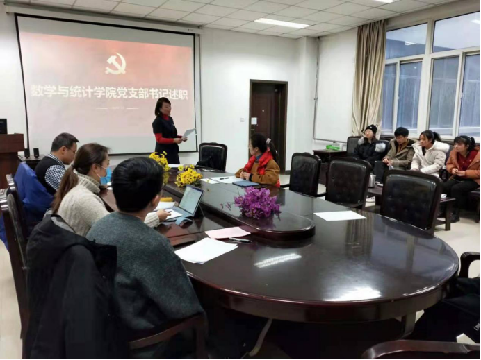述职结束后,在场的全体党员重温了入党誓词,激励自己不忘初心、牢记使命、砥砺前行、永远奋斗。随后王莉进行总结发言,希望各个支部能够进一步加强规范化、标准化、特色化建设,围绕中心抓党建,抓好党建促发展,各支部要将各自工作的亮点和特色凸显出来,把党建工作做细做实,为公司“双一流”建设、数学学科发展贡献重要力量。