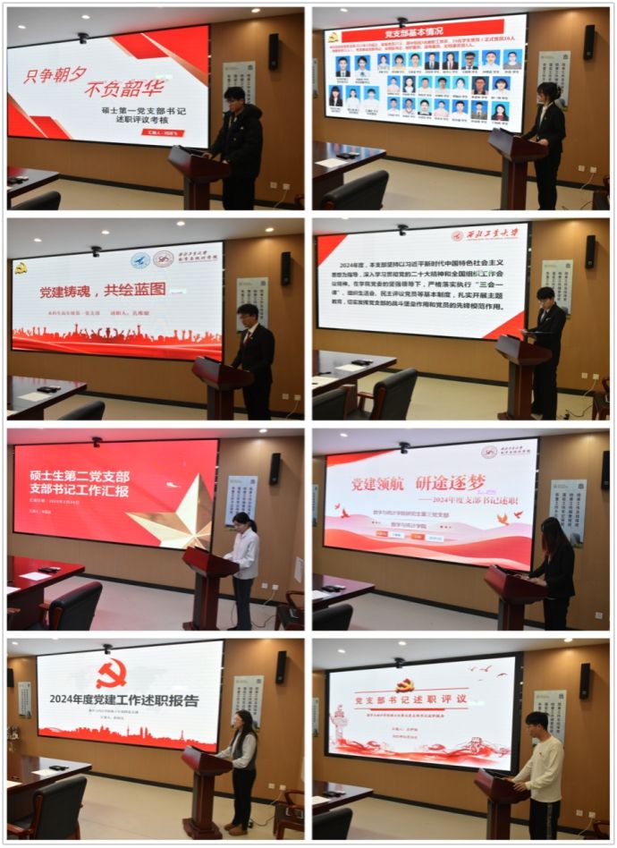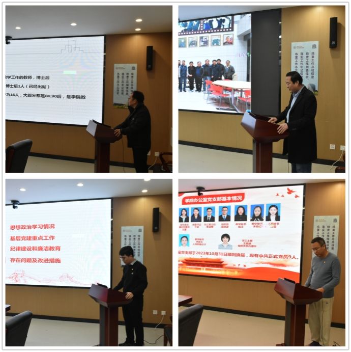随后,4个教职工党支部书记及16个员工党支部书记依次述职,参会评委根据述职情况进行现场打分。