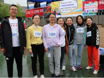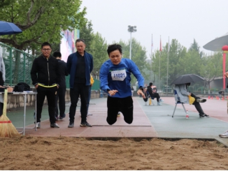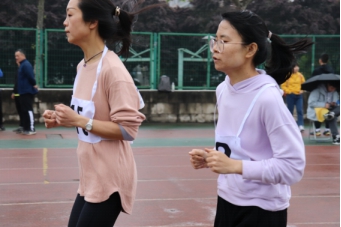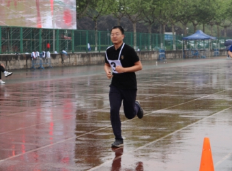 天公作美,细雨助威。21日的男子铅球、男子/女子立定跳远、女子800米比赛仍在雨中进行。王力工、侯东爽、赵倩、李巍等老师同王莉书记一起克服困难,坚持应赛。潘璐璐、高娅莉老师迎着雨滴稳步加速,以坚持和奋进感染着在场师生。