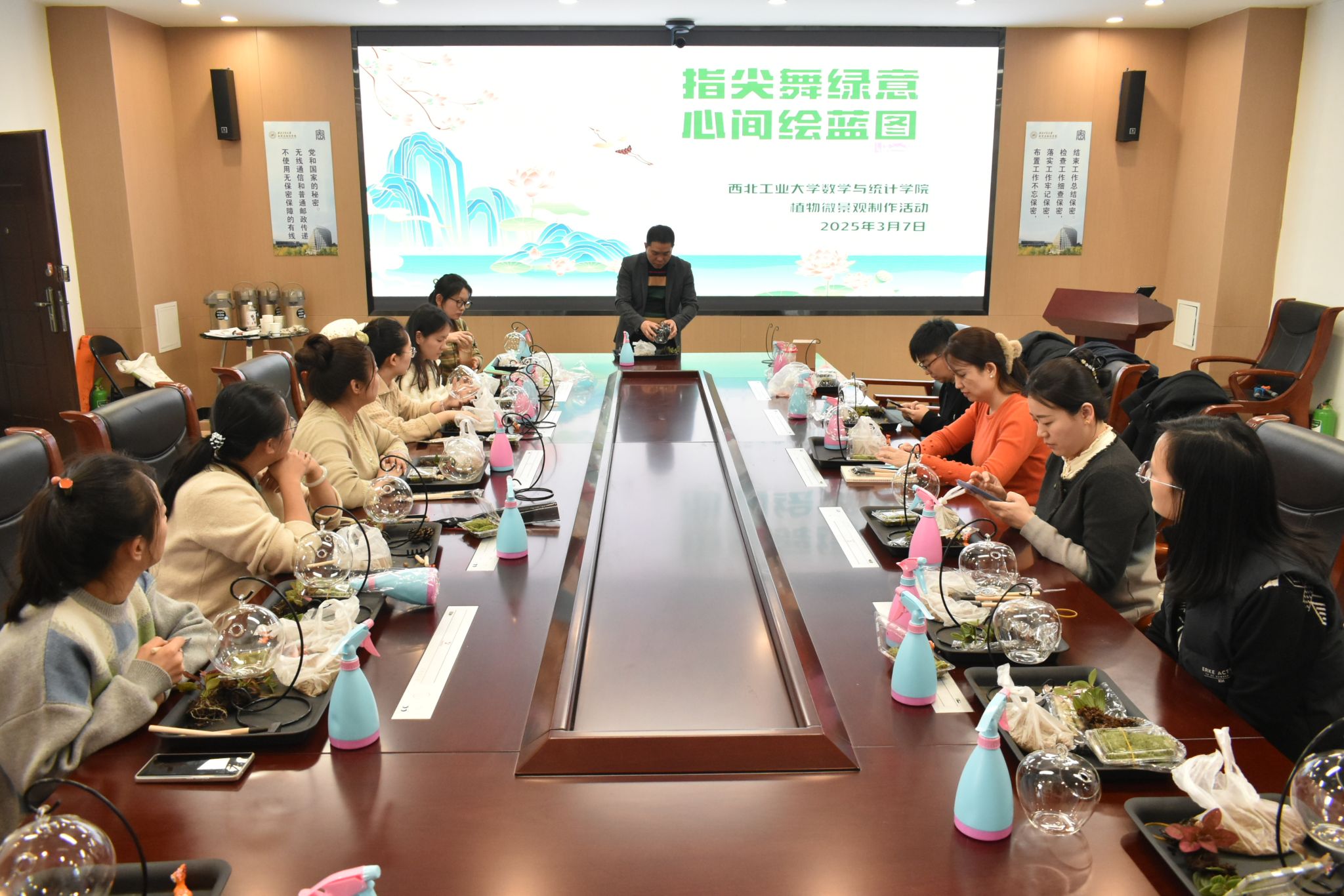 首先专业老师详细讲解了微景观的制作方法,从植物的挑选与搭配,到砂石的铺设技巧,再到整体构图的设计思路。女教职工们认真聆听,不时提出问题,与老师互动交流。在制作过程中,大家充分发挥自己的想象力和创造力,宛如一个个专业的园艺设计师。有的女教职工通过混合搭配营造出宁静的森林氛围;有的则加入可爱的卡通玩偶,打造出充满童趣的梦幻场景;还有的运用不同颜色的砂石,铺就出富有层次感的“大地”与“海洋”。大家相互协作,分享制作心得,现场欢声笑语不断。
