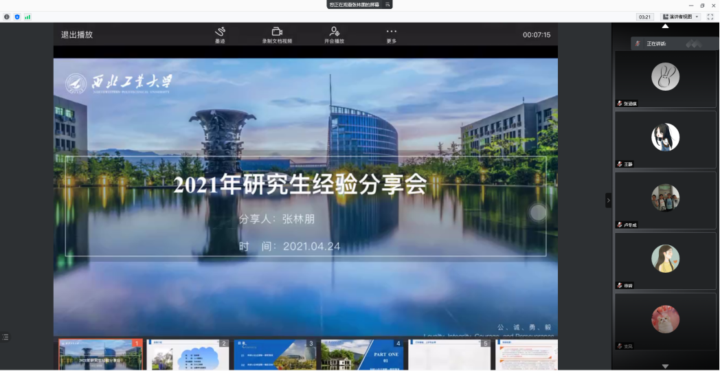 通过精彩的分享,学弟学妹们更加明确了学习的目标和前进动力,也获得了宝贵的学习、生活经验。经验在于应用,希望学弟学妹们在日后的科研道路上有所成就,在各自的研究领域发光发亮。