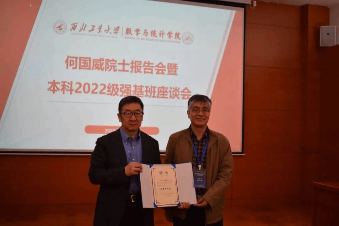会议伊始,聂玉峰经理首先就何国威院士的到来表示热烈欢迎,同时指出国家、公司高度重视强基计划的人才培养,鼓励同学们珍惜每一次聆听报告的机会,开拓视野,逐渐养成研究式学习的习惯。随后为何国威院士颁发了2022级强基班首席科学家聘书。