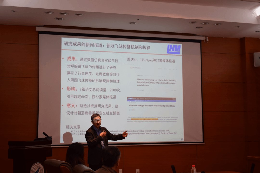报告会上,何国威院士以《湍流:从时空多尺度到力学的卡脖子问题》为题,用严谨科学的态度向在场师生介绍了湍流发展的历史进程,以及近年来其课题组在该领域的主要工作。他回顾了湍流统计理论和计算流体力学发展历史中具有里程碑意义的代表性成果,并通过复杂工程问题中湍流难题的探索实例,展示了流体力学在工业界的广泛应用。在交流环节,何院士对于同学们提出的问题进行了认真细致的解答。同时,他鼓励大家珍惜学习时光,保持好奇心,寻找根本问题,做对社会有用的人。
