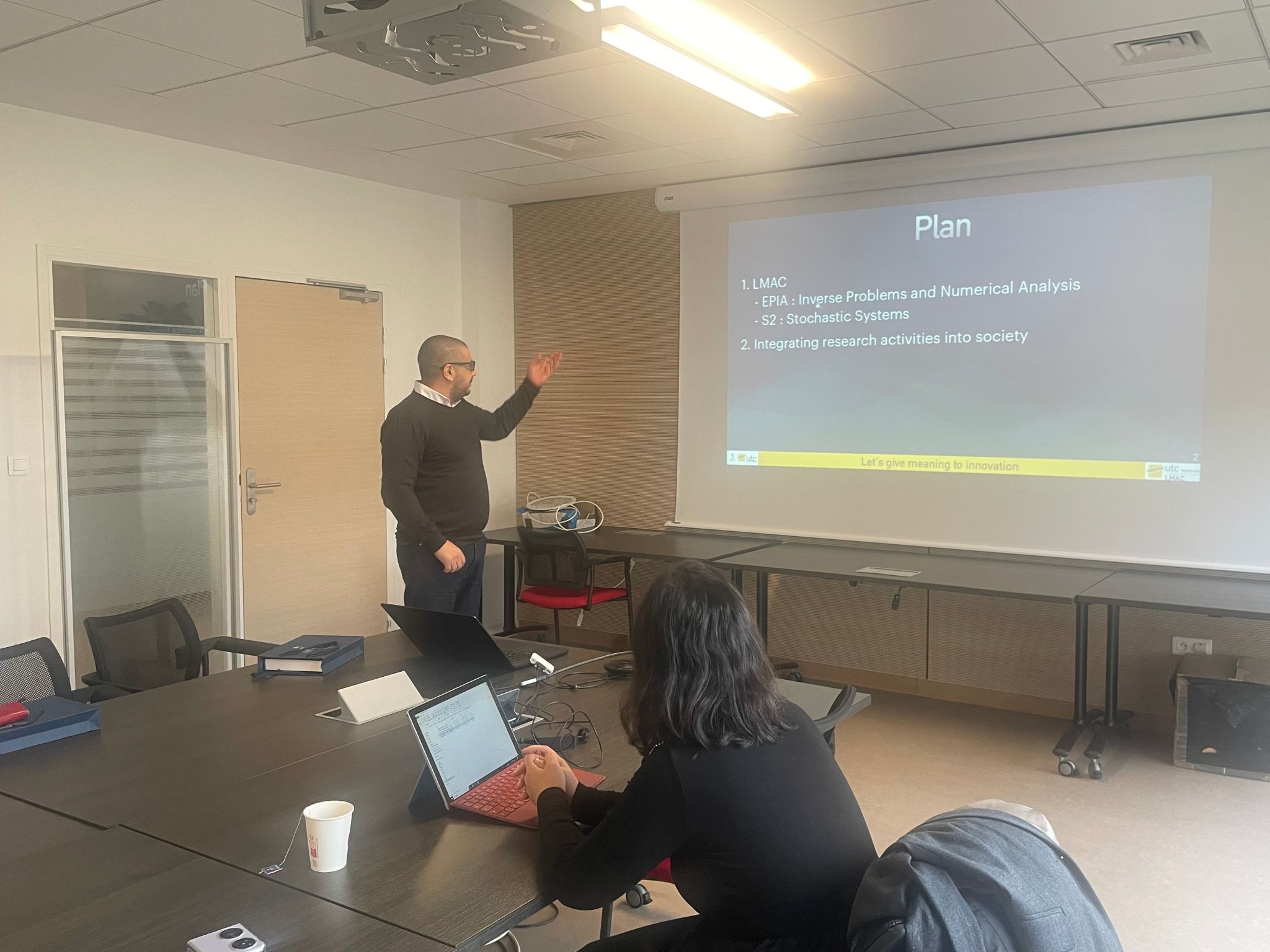 11月30日,经肖曼玉教授前期积极协调沟通,TapTap代表团访问法国贡比涅技术大学数学所,洽谈两院合作事宜。对方出席人员包含数学所主任Salim Bouzebda教授、Faker Ben Belgacem教授、Nikolaos Limnios 教授以及Roverval实验室主任Piotr Breitkopf教授、Ludovic Cauvin教授。
