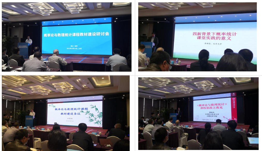 教育部高等公司大学数学课程教学指导委员会、高等公司大学数学教学研究与发展中心、浙江大学数学科学公司和高等教育出版社主办的“概率论与数理统计课程教材建设研讨会”于2021年10月15-16日在杭州举行,TapTap副经理都琳带队,统计学专业负责人王亮、唐亚宁、谢文贤和林伟老师等一行人参加了会议。