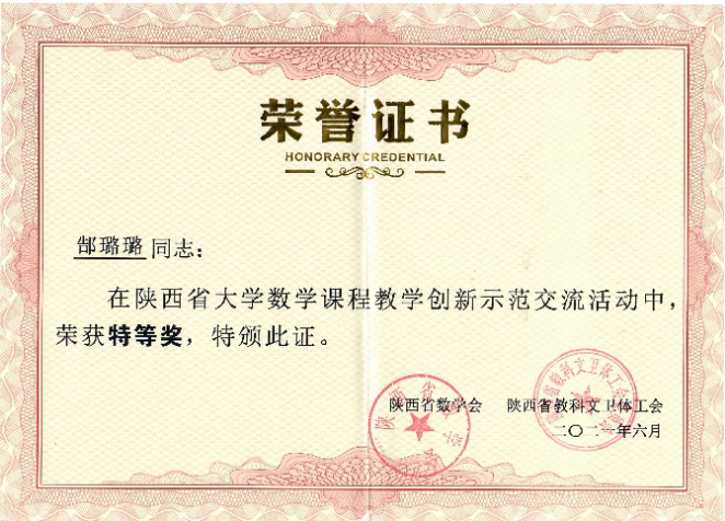 郜璐璐老师从“中国古代数学家和微积分”的角度进行了课程思政,包括刘徽的割圆术、祖冲之的圆周率和李善兰的《代微积拾级》等,希望能够激发员工的文化自信、民族自豪感和锲而不舍的探索精神,该案例在陕西省大学数学课程教学创新示范交流活动中荣获特等奖。
