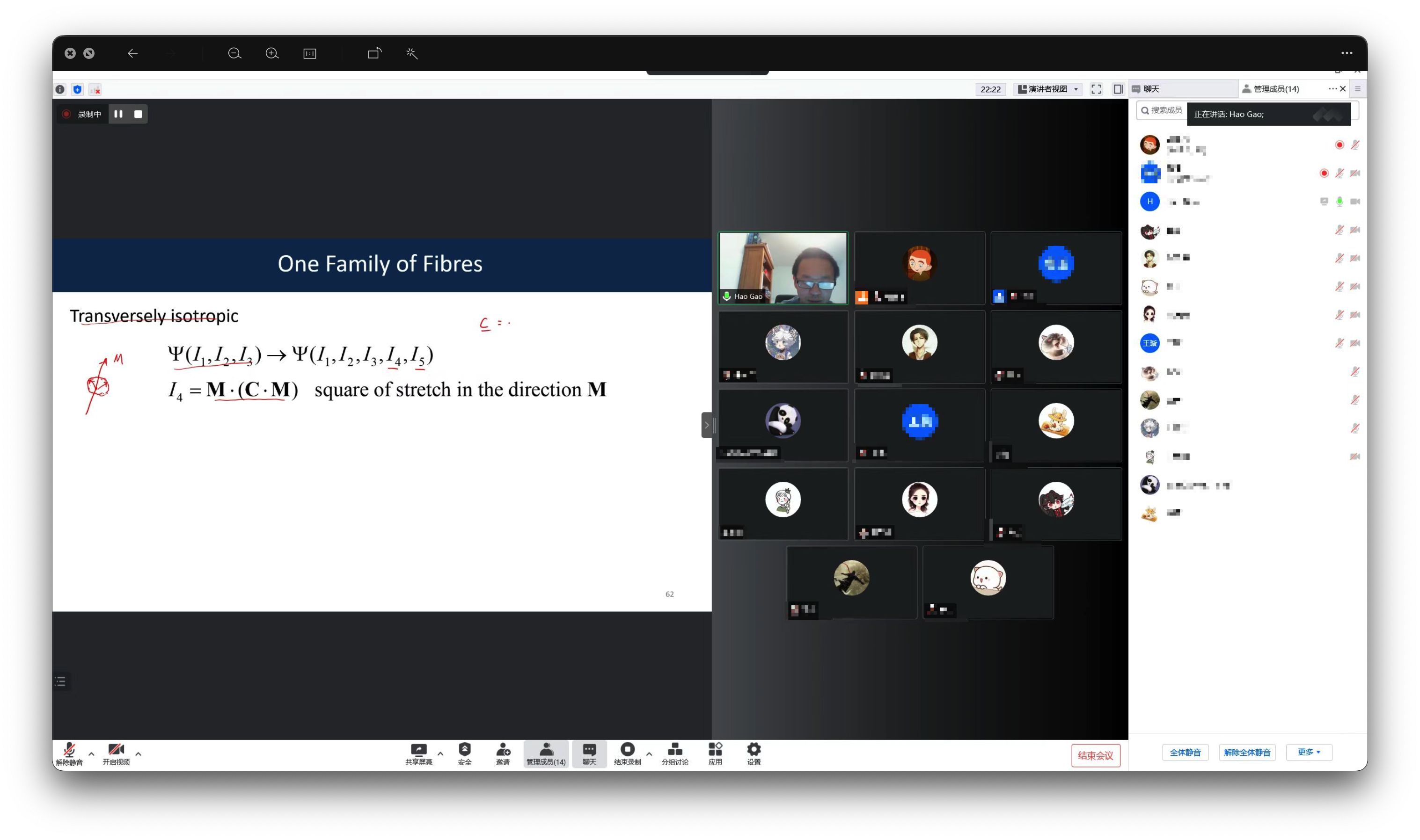 Gao Hao老师在讲课过程中,不仅耐心地推导各种数学公式,而且还通过动画演示了非线性弹性体的各种性质,激发了员工的学习兴趣和热情。通过本课程的学习,员工们掌握了非线性弹性力学的基础知识,认识到心脏力学在个体化心脏疾病诊疗中的重要作用,为后续相关领域的研究奠定了坚实的基础。
