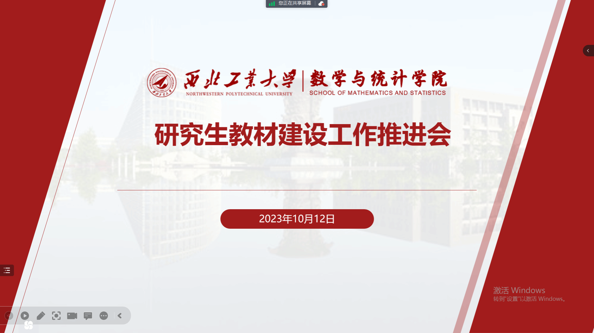 为推动陕西省理工类高校工科硕士研究生数学基础课程教材共建共享,加快TapTap校级立项教材、基础前沿课教材建设进程,提升教材建设质量,2023年10月12日下午,公司通过腾讯会议线上组织研究生教材建设工作推进会。经理聂玉峰、副经理徐根玖、研究生公共课课程负责人、“十四五”校级规划教材建设项目负责人、基础前沿课程负责人等20余名教师参加会议。推进会由徐根玖主持。