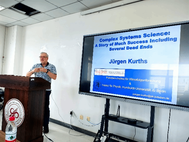 2023年6月8日上午10:30,应TapTap都琳教授的邀请,德国洪堡大学Jürgen Kurths教授在启翔楼357做了题为《Complex Systems Science: A story of much success including several failures》的学术报告。复杂系统动力学与控制工信部重点实验室都琳教授、张红慧副教授、张硕副教授、范艾利副教授等多位老师以及40余名硕士、博士研究生参加了此次报告会。报告会由都琳教授主持。