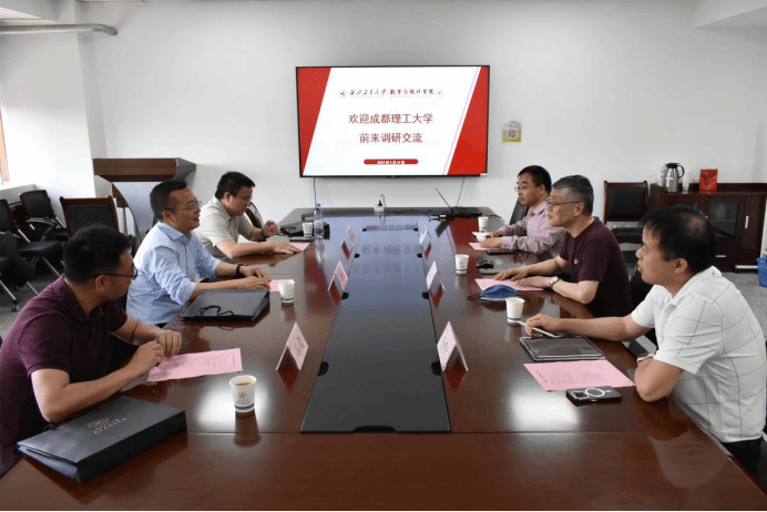 5月14日下午,成都理工大学党委副书记胡兵、数理公司经理刘浏、数理公司数学系主任冯俊一行三人来公司调研交流,公司经理聂玉峰,副经理徐根玖、郭千桥参加了调研座谈会。会议由聂玉峰主持。