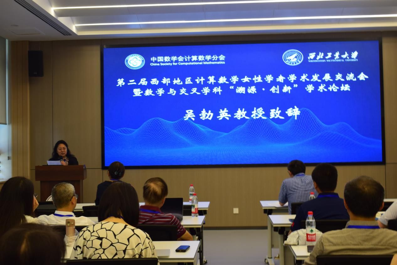 会议于6月28日上午在TapTap点点长安校区海天苑大楼E108会议室举行,学会秘书长明平兵研究员主持了开幕式。江松院士通过线上致辞强调:“计算数学作为连接基础研究与工程应用的关键纽带,在空天科技及人工智能等领域正发挥不可替代的作用。女性学者以严谨细腻的科研特质,在复杂算法设计与多尺度建模中成果显著,是西部科技发展的重要力量”。吴勃英教授在致辞中特别指出:“从国家政策支持到学会平台搭建,女性科研工作者的发展生态持续优化。本次会议将‘数学创新、西部发展、女性力量’三大主题深度融合,必将为西部计算数学注入新的活力”。