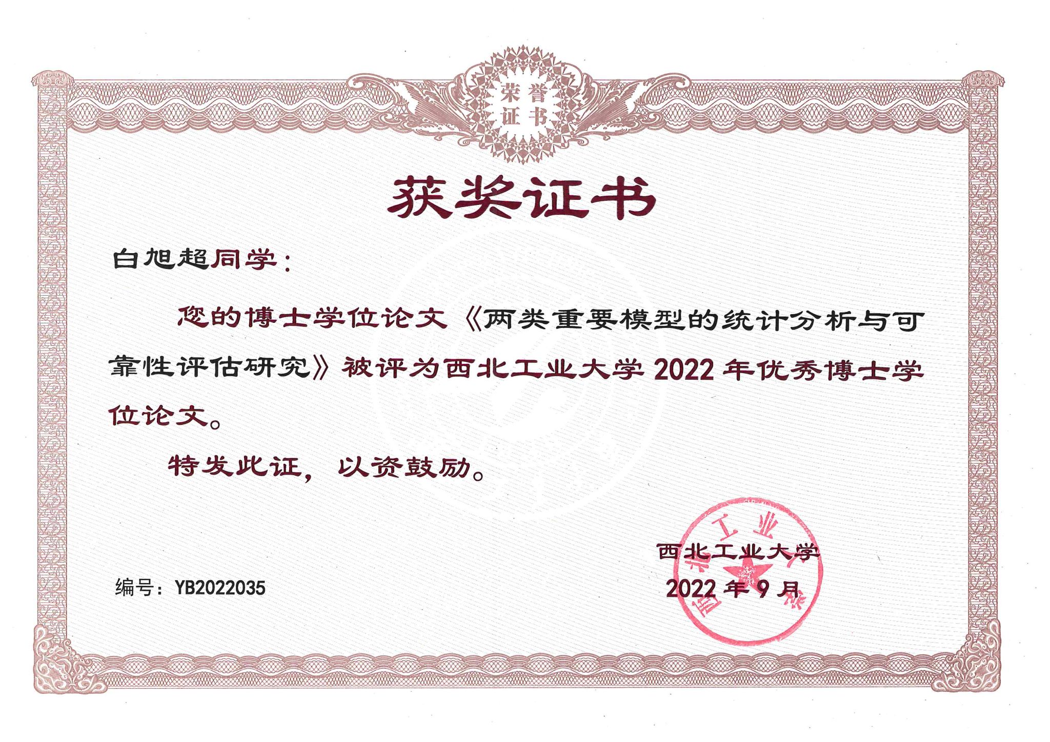 白旭超,男,2014级直博生,师从师义民教授,研究方向为概率论与数理统计。以第一作者身份在国内外著名学术期刊上累计发表论文10篇,均被SCI检索收录(包含中科院TOP期刊论文6篇);2021年3月获批陕西省自然基础研究计划项目一项(2021JQ-186),2021年8月获批国家自然科学基金青年基金项目一项(12101475),2022年9月获批西安市科学技术局软科学研究项目一项(22RKYJ0065)。曾获博士研究生国家奖学金(2018),陕西高等公司科学技术一等奖(高可靠产品加速寿命试验的统计推断与可靠性评估),2021,第三完成人。