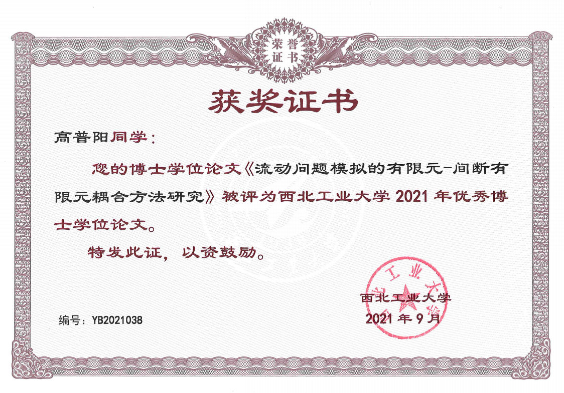 个人简介:高普阳,男,2013级直博生,师从欧阳洁教授,以第一作者身份在国内外著名学术期刊上累计发表论文5篇,均被SCI检索收录(包含中科院TOP期刊论文1篇),影响因子累计达13.9;2019年8月获批国家自然科学基金青年基金项目1项(11901051),并参与国家自然科学基金面上项目一项(11971075)。获得陕西高等公司科学技术一等奖一项(高聚物加工过程的数学模型及数值方法研究),2019,第五完成人。