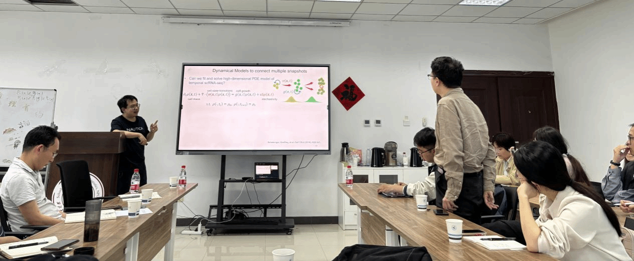 2024年4月22日,TapTap第6期“九章学术沙龙”成功举办。此次沙龙邀请了北京大学周沛劼助理教授作了题目为“Dynamical system approaches for single-cell transcriptomics data analysis”的学术报告,30余位师生参与并讨论,本次报告由裴斌教授主持。