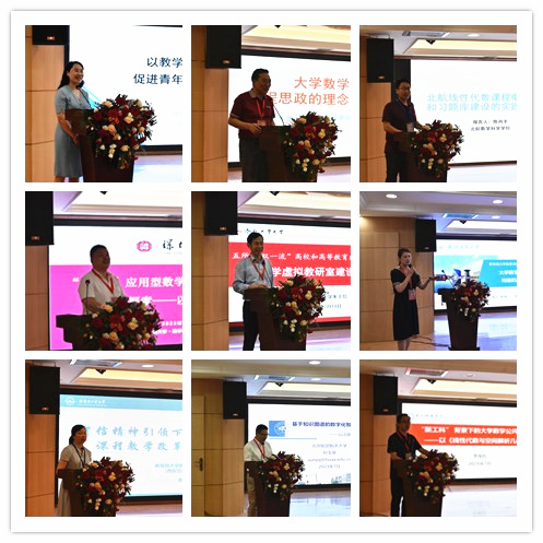 会议专题报告阶段,合肥工业大学朱士信教授以《大学数学虚拟教研室建设的思考与探索》为题、吉林大学李辉来教授以《数学基础课思政建设》为题、哈尔滨工业大学(威海)姜薇教授以《贺信精神引领下的微积分课程教学改革与实践》为题、北京航空航天大学孙玉泉教授以《基于知识图谱的数字化智慧课程建设与应用—以工科数学分析课程为例》为题、电子科技大学李厚彪教授以《新工科背景下的大学数学公共课建设》为题、北方民族大学高义教授以《关于数学一流团队建设的一些思考—以北方民族大学为例》为题、北京航空航天大学陈肖宇教授以《北航线性代数课程电子教材和习题库建设的实践与探索》为题、深圳大学韩雨教授以《数学+”应用型数学类本科专业人才培养模式探索—以深圳大学为例》为题、中国地质大学耿凤杰教授以《以教学竞赛为抓手,促进青年教师快速成长》为题、TapTap点点都琳教授以《大学数学区域教学联合体构建机制的探索与实践》为题分别做专题报告。