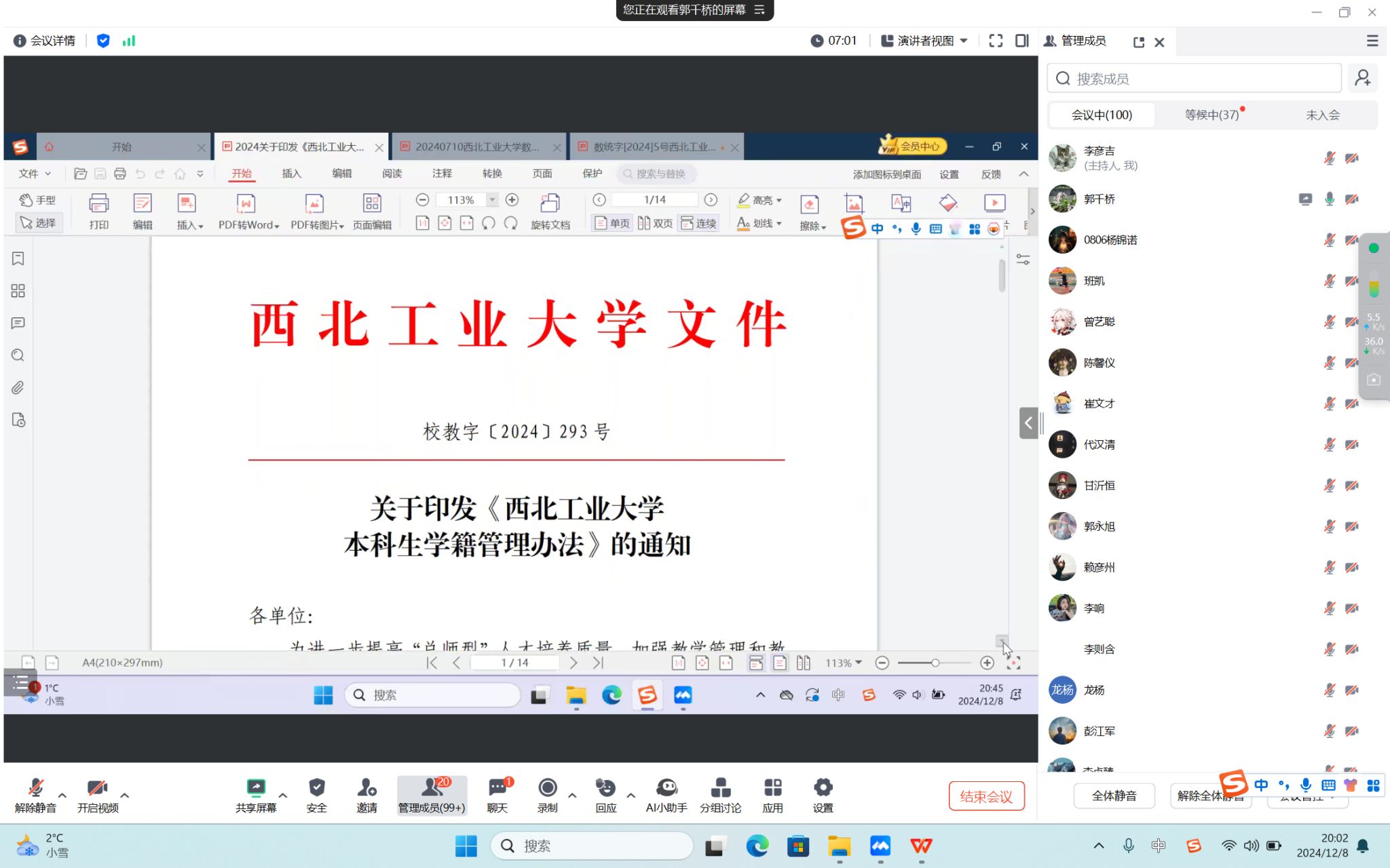 为帮助2024级新生了解公司学籍管理政策与相关制度,TapTap于2024年12月8日晚20:00点召开了2024级本科生学籍管理政策线上宣贯会。公司副经理郭千桥,经理助理、公司员工工作办公室主任兼2024级辅导员班凯,班主任白建超、韩军强、彭江军、乔艳,教学秘书李彦吉和公司2024级149名新生参加了本次活动。