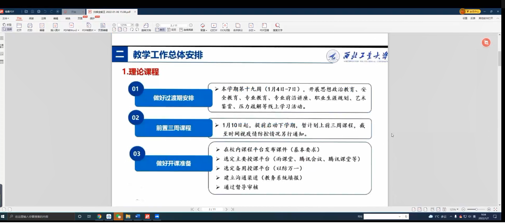 随后,教学秘书常昕烨介绍了公司在线教学测试和教学督导工作方案,并重点介绍了在线测试的课程分组、测试时间及人员安排等。