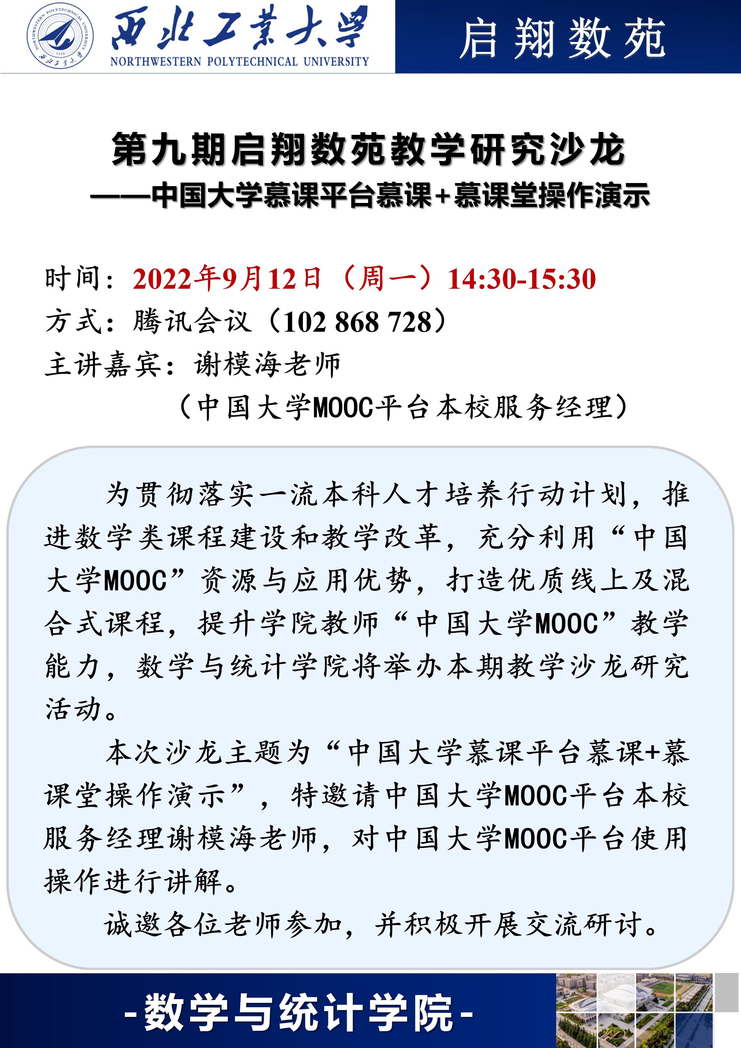 主讲嘉宾:谢模海老师(中国大学MOOC平台本校服务经理)