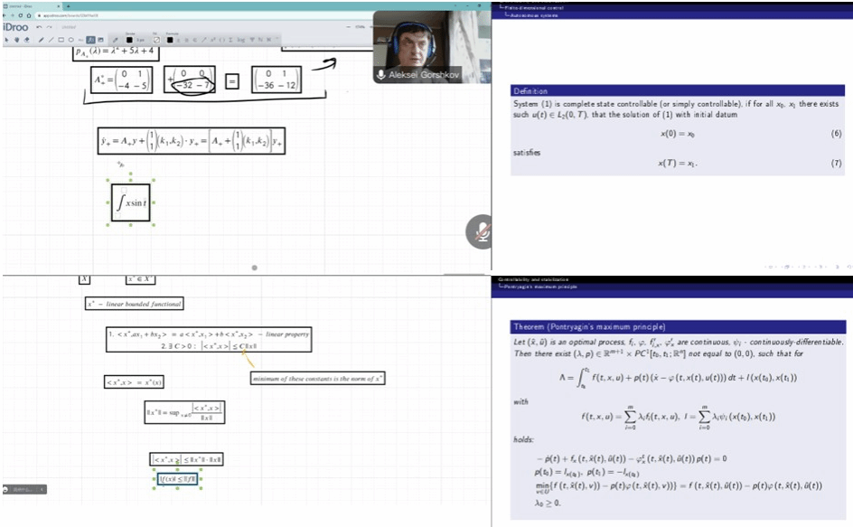 授课过程中,Gorshkov副教授由浅入深、循序渐进。以初等方法为原点,逐步引入现代数学方法。从员工角度出发,利用iDos等软件在线展示定理推导和证明过程。以问题引导员工思考,在互动中逐步描绘出理论框架的全部图景,使员工深刻感受了现代数学在控制领域的特色与发展潜力。