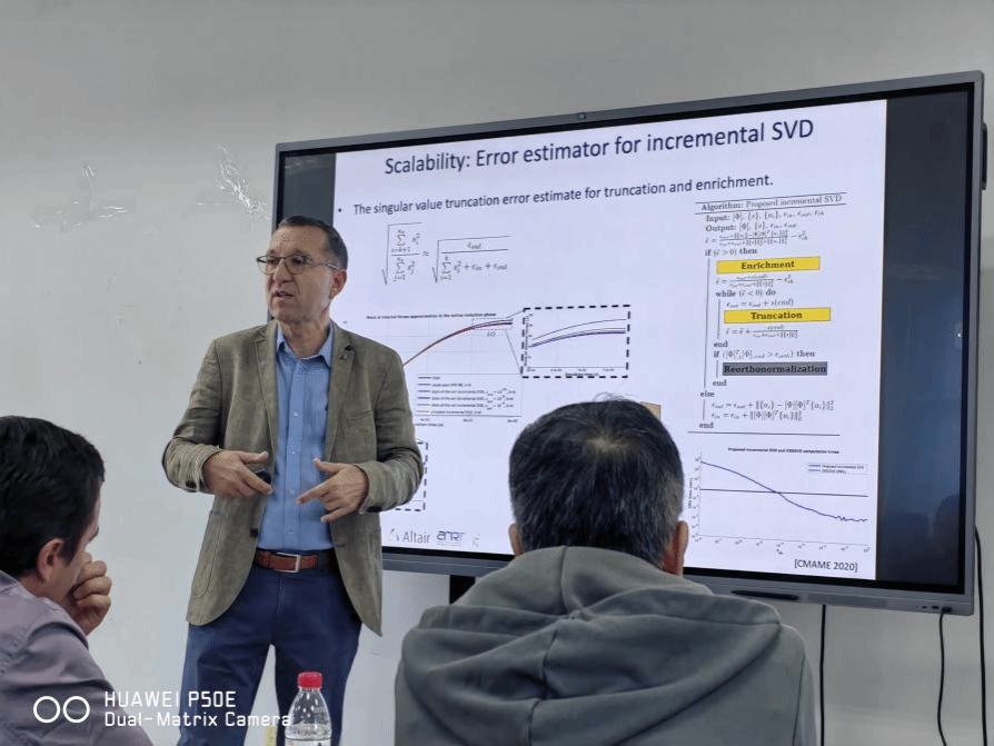 为推动公司国际化建设,开阔师生国际学术视野,进一步营造良好学术氛围,2023年10月23日,受公司肖曼玉副教授邀请,法国贡比涅技术大学Piotr BREITKOPF教授、Ludovic CAUVIN教授、法国图尔大学Guénhaël LE QUILLIE一行三人来访公司,做客公司九章国际论坛。数统公司经理聂玉峰,国际交流与合作办公室主任肖曼玉、国际化秘书李卓榕以及公司多名师生参加了此次讲座。讲座由聂玉峰经理主持。