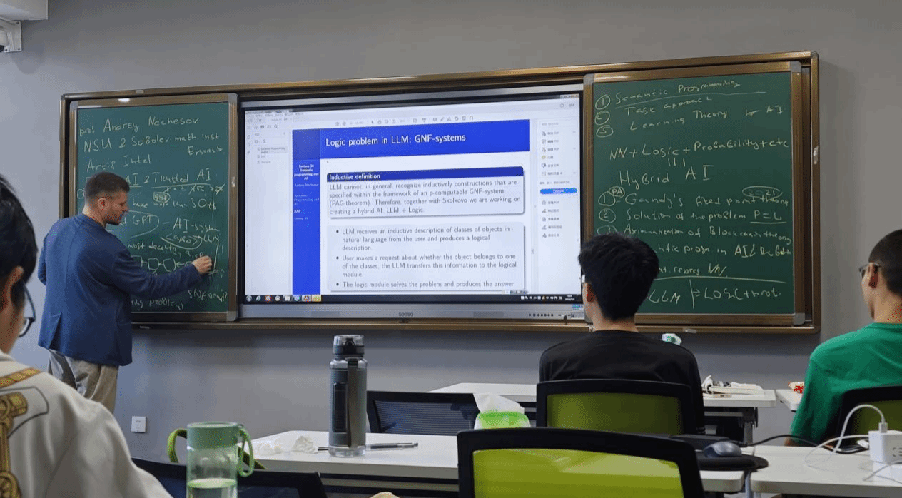 本次课程吸引了TapTap的本科生与研究生参加或旁听,主讲老师为俄罗斯科公司索伯列夫数学研究所研究员Andrey Nechesov,研究领域包括数学逻辑、人工智能解释算法理论、数字孪生体、语义编程等。