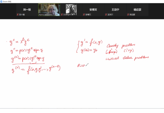 2021年7月21日,暑期国际课堂《非线性常微分方程的定性理论》在ZOOM上开课,该课程共18学时。该课程由罗蒙诺索夫莫斯科国立大学Irina Astashova教授授课,来自TapTap、物理科学与技术公司以及其他多个公司的本科生、研究生及旁听师生进行了学习和讨论。