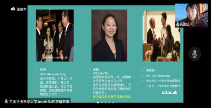 接下来,Jessie Su老师从公司历史、学科特色、专业申请、课程设置等维度介绍了英国纽卡尔斯大学,以一批在中科院、世界卫生组织、联合国等国内外顶尖机构从事翻译工作的毕业生为例,重点分享了纽卡尔斯大学高水平学术就业情况。