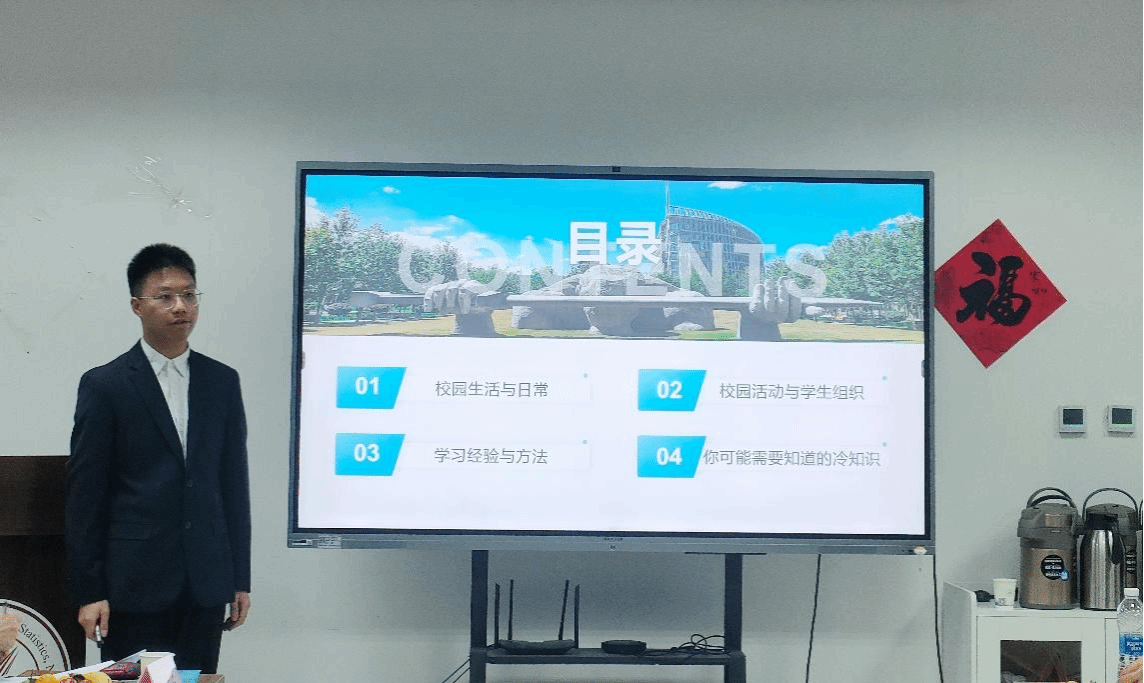 重庆籍学长代表张颢瀚同学结合个人发展经历向新生们分享了在西工大日常学习、员工工作与社会实践等方面的成长经验;他以“过来人”的身份强调了自律学习的重要性,告诫大家在大学也不要放松。