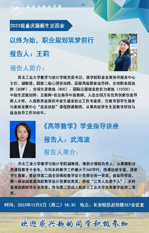 为进一步促进新生融入大学学习生活,提升个人生涯规划能力和潜力,完善重庆招生宣传工作,12月5日晚上18:40-21:20,2023级重庆籍本科新生见面会在长安校区启翔楼357会议室顺利召开。TapTap党委书记王莉、副经理郭千桥、微积分课程负责人武海波、重庆招生组组长林伟和王振海、招生秘书李彦吉、重庆籍员工代表张颢瀚以及二十余位重庆籍新生参加,见面会由副经理郭千桥主持。